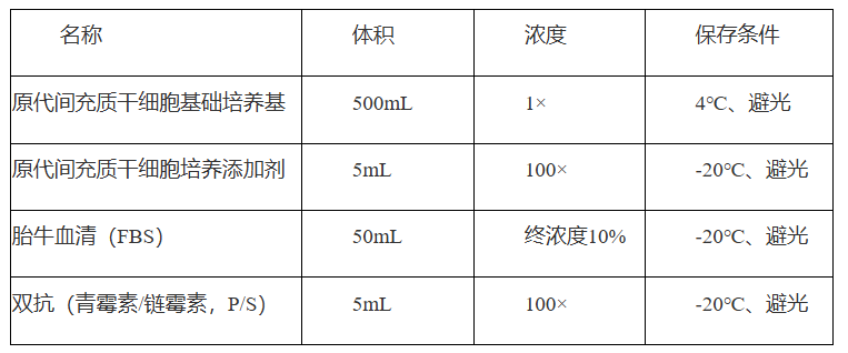 本产品中已包含小鼠原代滑膜间充质干细胞生长所需的各种成分,无需添加任何成分,可直接用于小鼠原代滑膜间充质干细胞的培养。