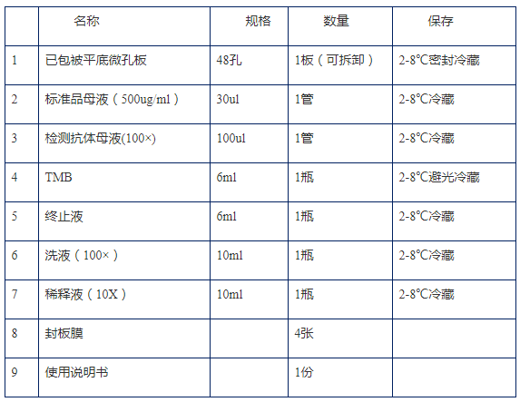 1. 试剂盒内容(2-8℃冷藏)