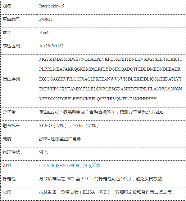 人白细胞介素15(IL-15)重组蛋白
